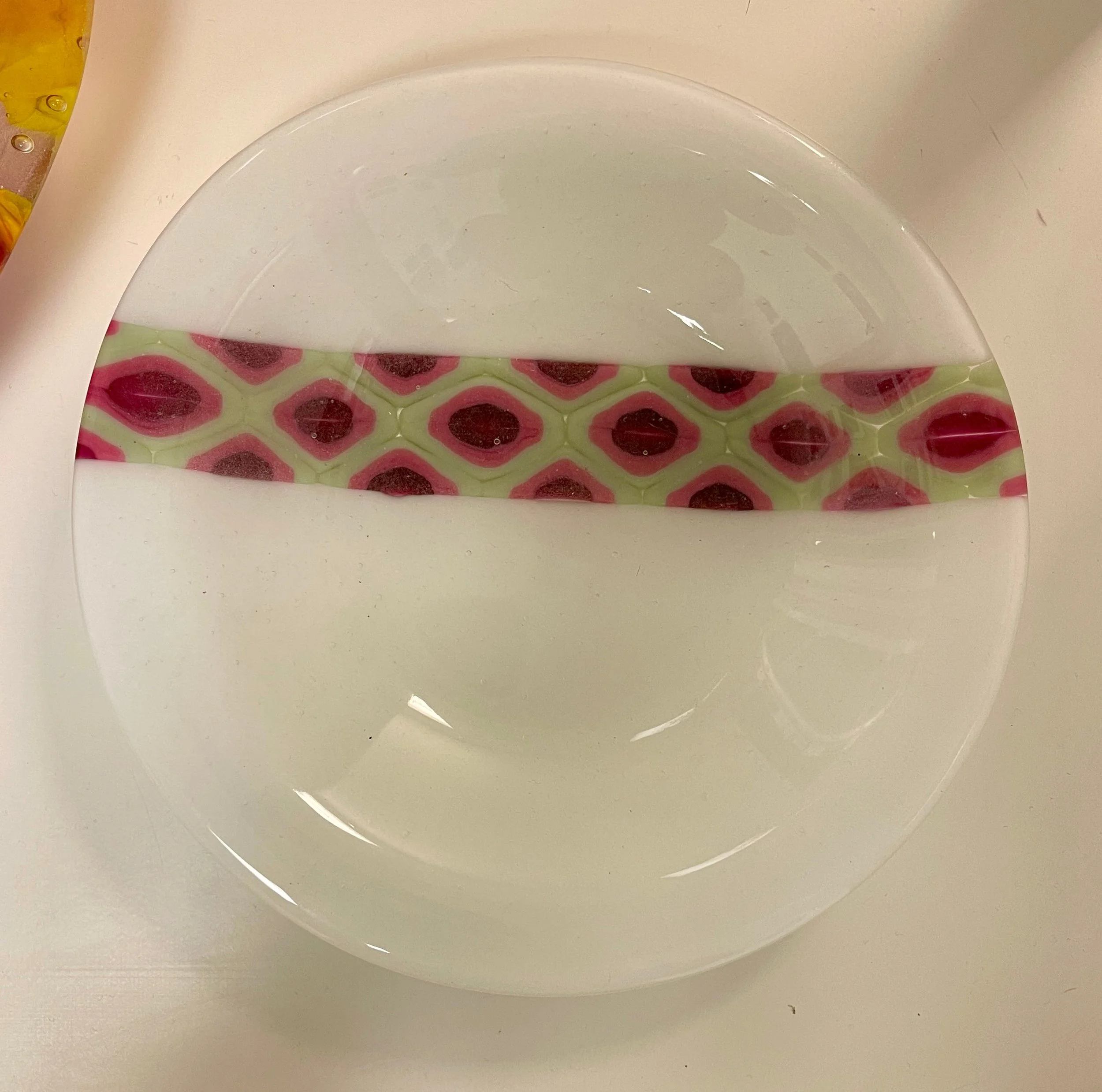 Art Pieces › Pattern in Pink Image 1 of 2 Image 2 of 2 Pattern in Pink $125.00 This 10" bowl is white with a lovely, complex pattern with pinks and greens. Add To Cart Added! This 10" bowl is white with a lovely, complex pattern with pinks and greens.